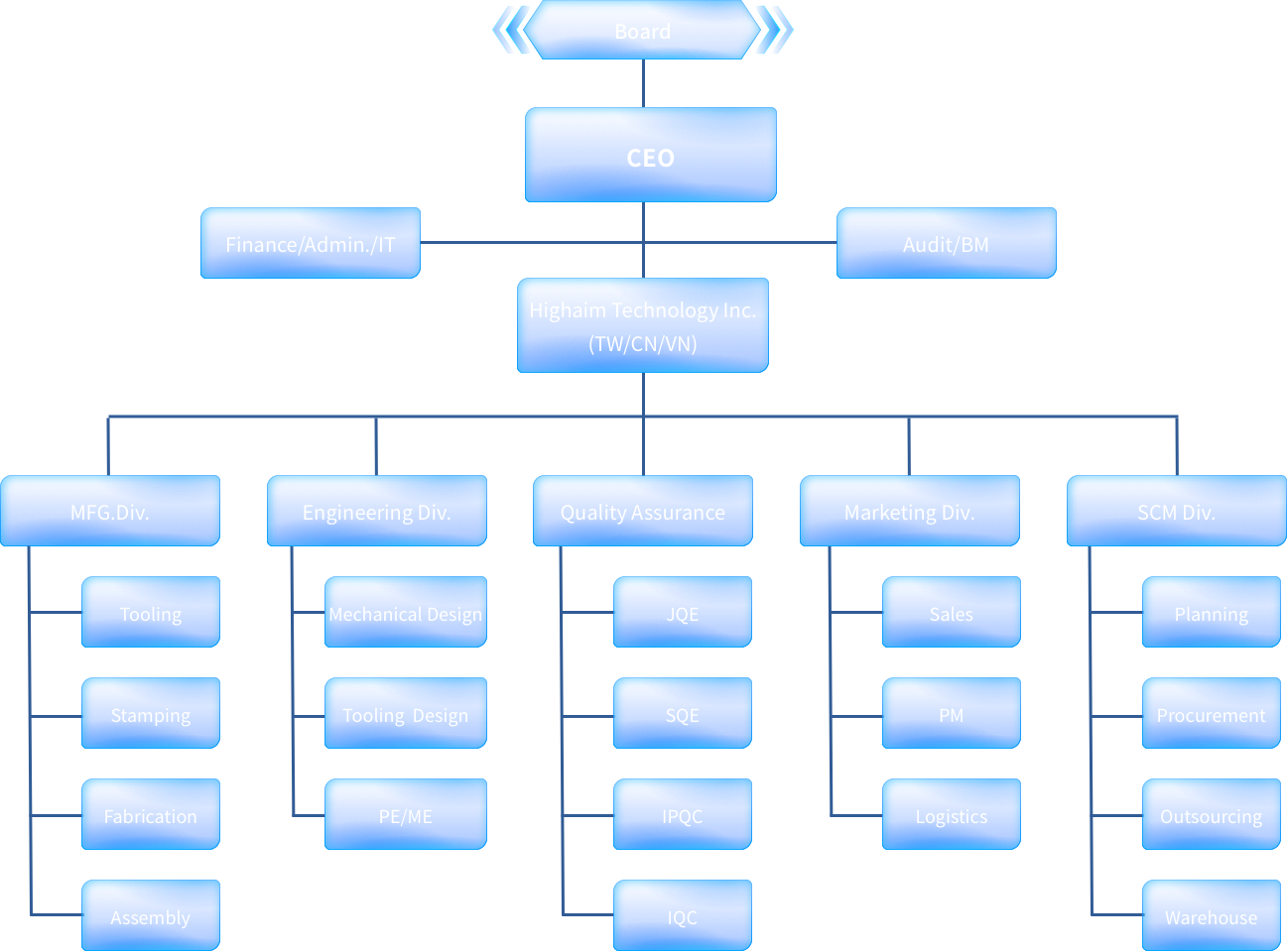 本公司依據多年服務於國內外客戶經驗,建立完整組織架構,各部門具備專業背景人員與團隊,以品質優先,